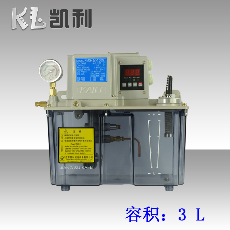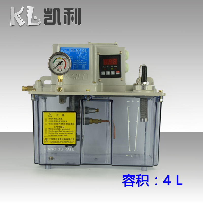 KMG-IV-120型電動潤滑泵是我公司 研發(fā)的專利產(chǎn)品。油箱的容積為1.8L、3L、4L、5L采用德國原裝材料被美譽為透明金屬。客戶如果要求鋼制鈑金油箱可根據(jù)要求定做,該泵是一款自動抵抗式集中潤滑系統(tǒng)配置的產(chǎn)品,潤滑泵的電壓有AC110V和AC220V可滿足不同客戶需求提供更多選擇。間隔潤滑時間有潤滑泵自帶的數(shù)顯微電腦控制,可以根據(jù)實際需要設(shè)定,配置失壓報警自動化程度高獨立獨立微電腦控制。該泵與MG系列和XMB系列容積加壓式式計量件、XMB系列容積加壓式式計量件(整體鋁合金設(shè)計無需連接體)、LYQ8型濾油器、FX-3G濾油器、FX-5濾油器、PV、JV系列連接體。等管接件配套使用組成對機(jī)械設(shè)備定時定量自動集中潤滑為您的設(shè)備,降低油耗、提高使用壽命、提高加工精度、降低故障率、為您的設(shè)備保駕護(hù)航。也可致電我公司咨詢0515-84213666或者13770139320----QQ598425079我們將以最專業(yè)和 質(zhì)的技術(shù)服務(wù),可為客戶提供量身定做設(shè)計集中潤滑系統(tǒng)方案。詳情了解和訂貨可參照樣本33頁,沒有樣本可到我公司官方網(wǎng)站下載。  |