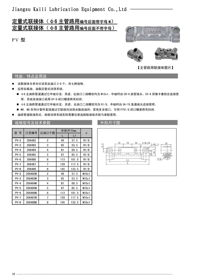 六通分油器PV型管路分配器 配油器 定量式聯(lián)接體